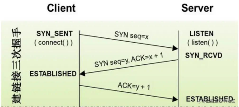 客户端再回传一个带 ACK=Y+1, Seq=Z 的数据包,代表“握手结束”