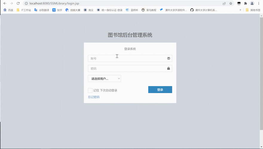 1、登陆功能:登陆系统为身份验证登陆。分为学生登陆,管理员登陆,忘记密码及其记住密码方便下次登录,暂不具备注册功能。