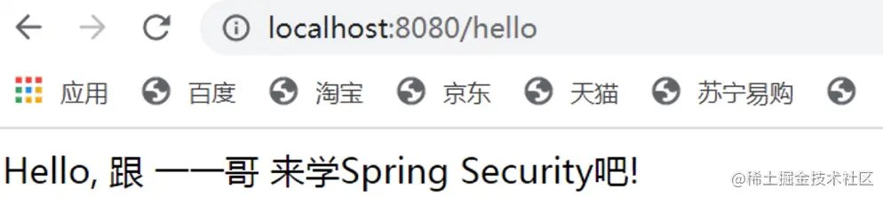 接着我们重启项目,这时候利用我们自己配置的用户名和密码,就可以访问"/hello"接口了。