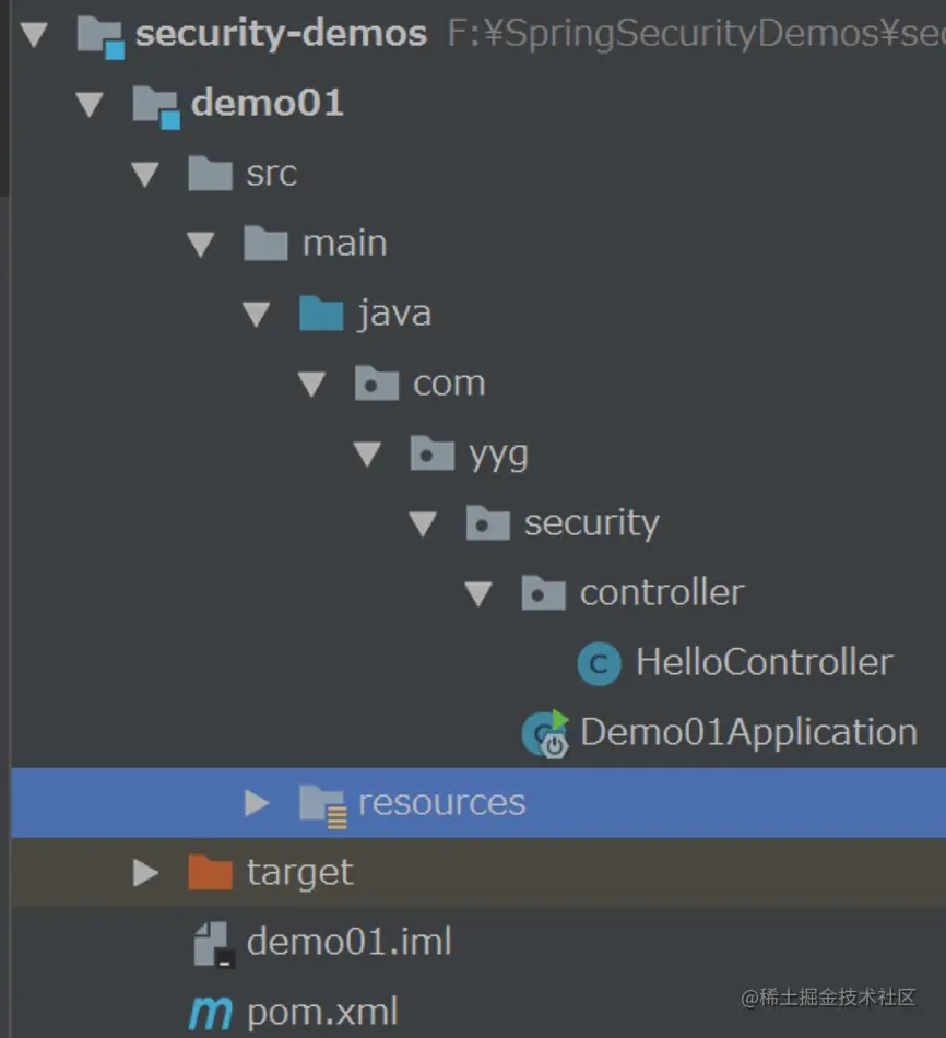 我们在上面的SpringBoot开发环境中,创建出第一个SpringSecurity模块,具体创建过程略(嘿嘿)。