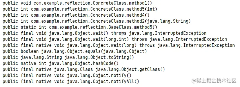 System.out.println(classClassConstructor); // 结果:public com.example.reflection.ConcreteClass()