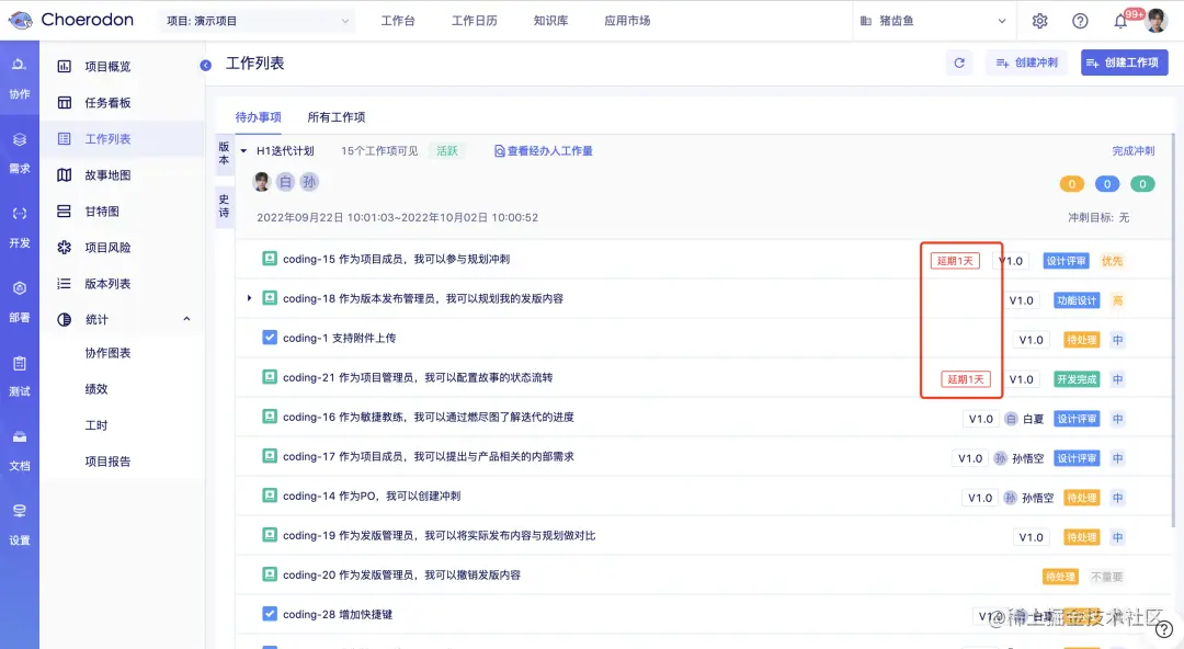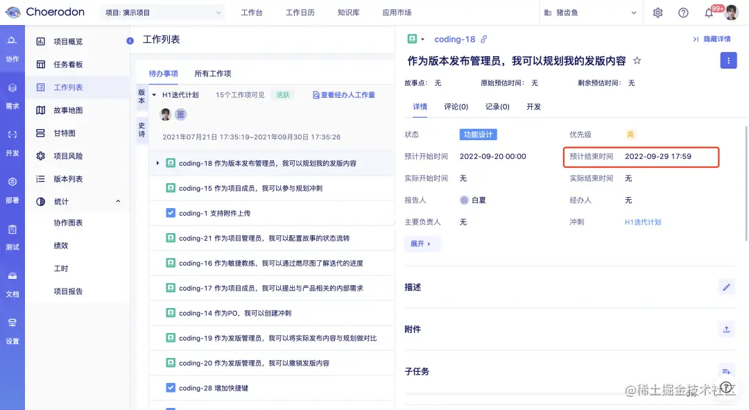 「预计结束时间」的设置可以使截止时间更清晰,再结合「工作项延期」、「每日工作提醒」,帮助大家在deadline之前结清事项。