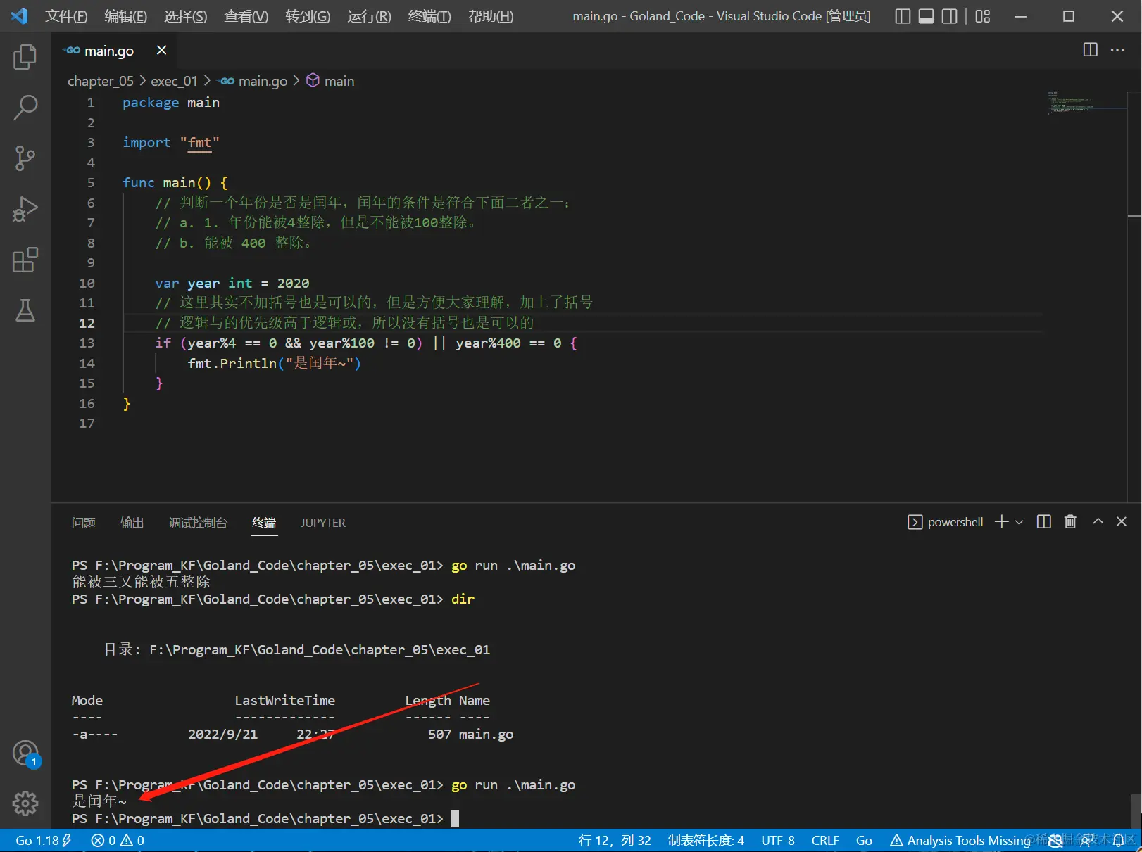 fmt.Println("是闰年~")