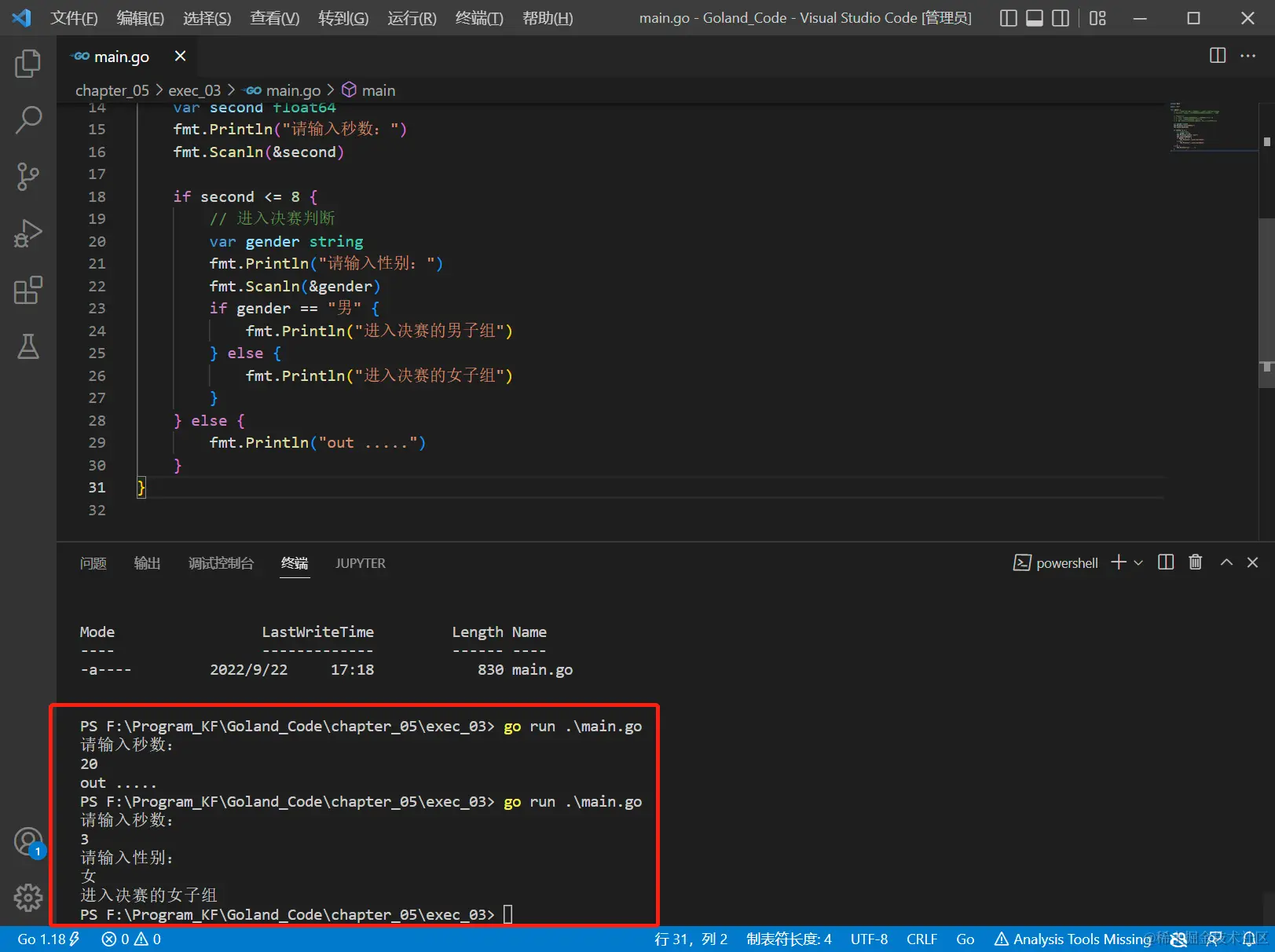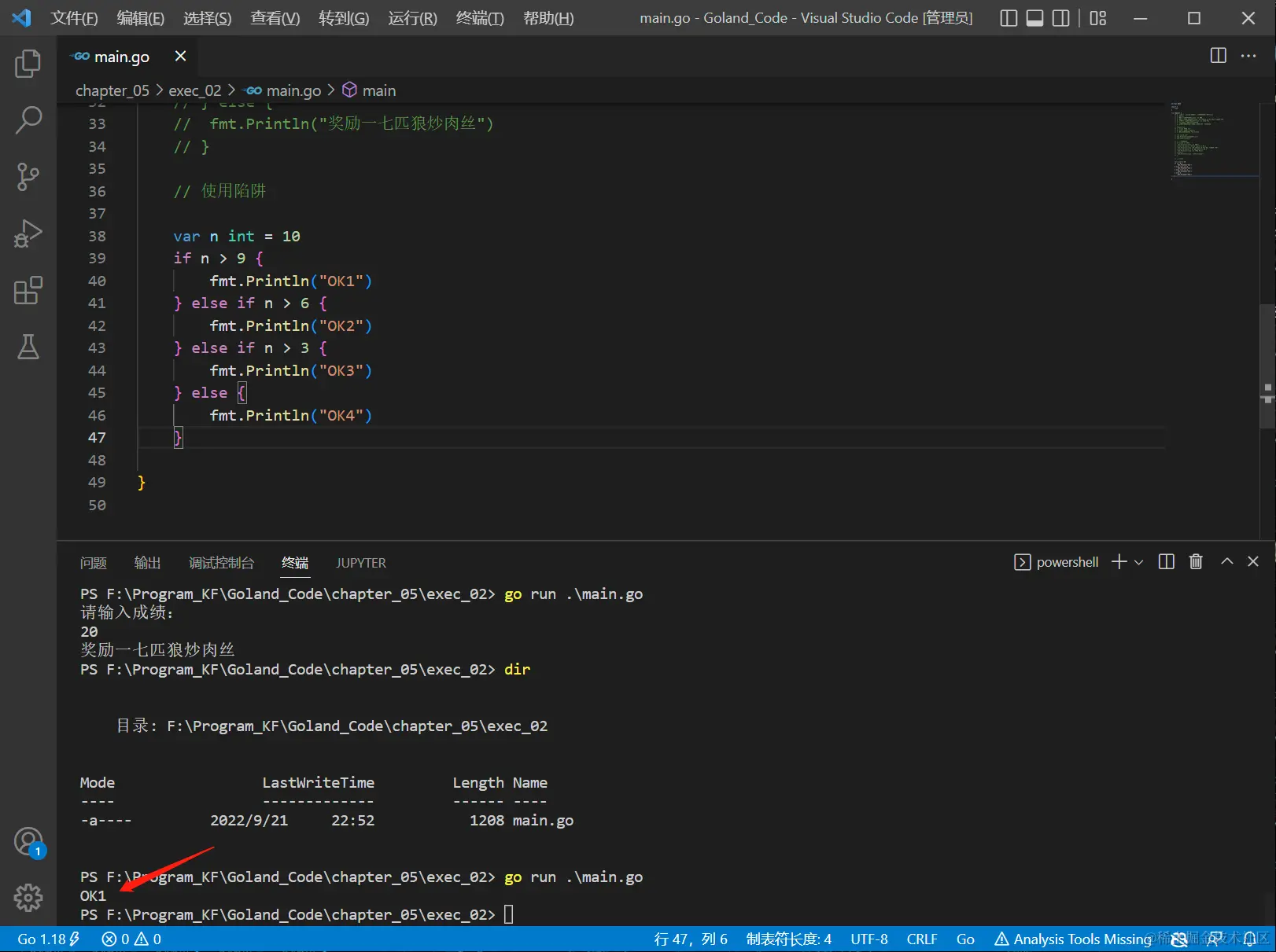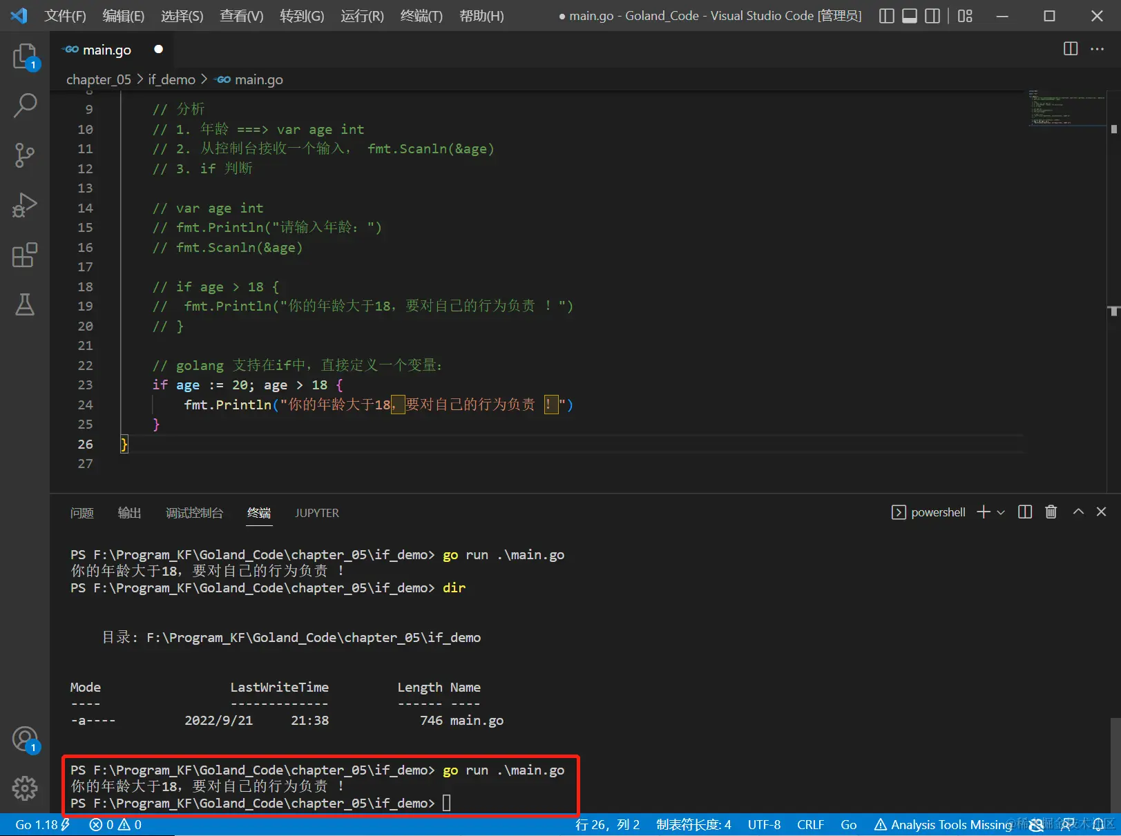 - 执行代码块1 ====> fmt.Println("你的年龄大于18")...