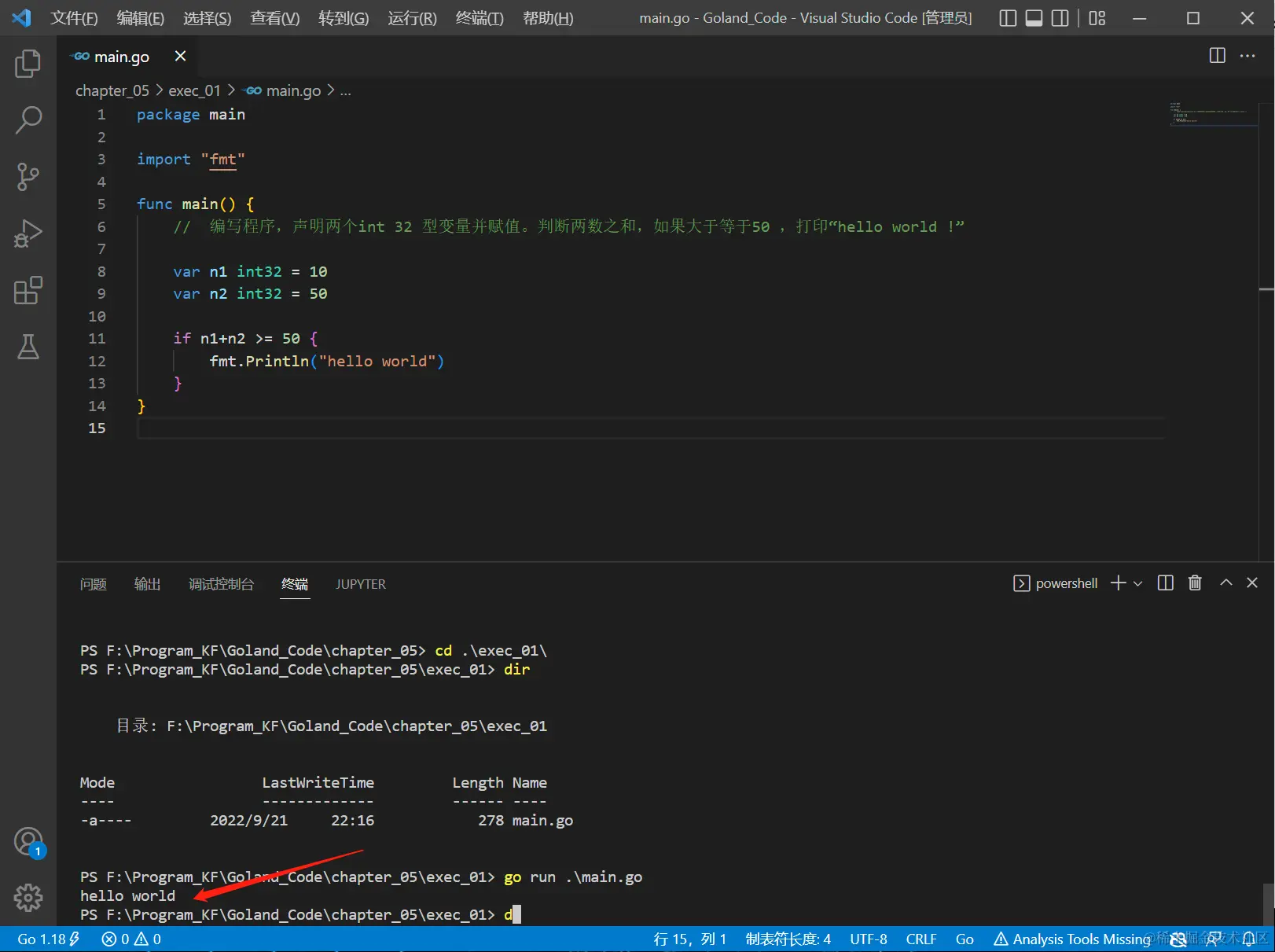 fmt.Println("hello world")
