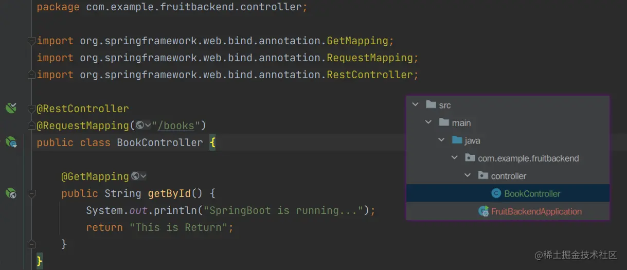 Application类,我创建的项目名为fruitBackend,所以默认的启动类叫FruitBackendApplication -