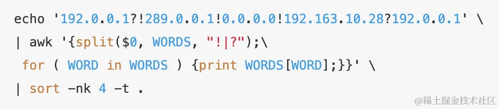 String ip_str="192.0.0.1?!289.0.0.1!0.0.0.0!192.163.10.28?192.0.0.1";
