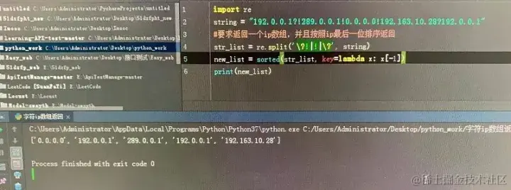 要求:返回一个IP数组,并且按IP最后一位排序返回。