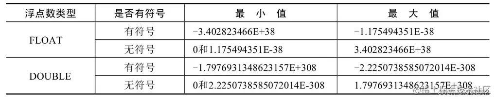 浮点数类型主要有两种:单精度浮点数FLOAT和双精度浮点数DOUBLE。
