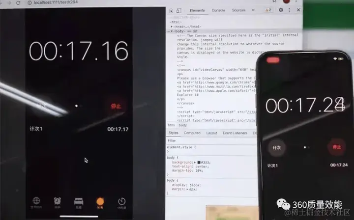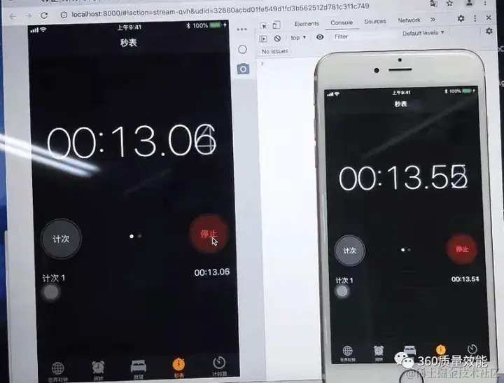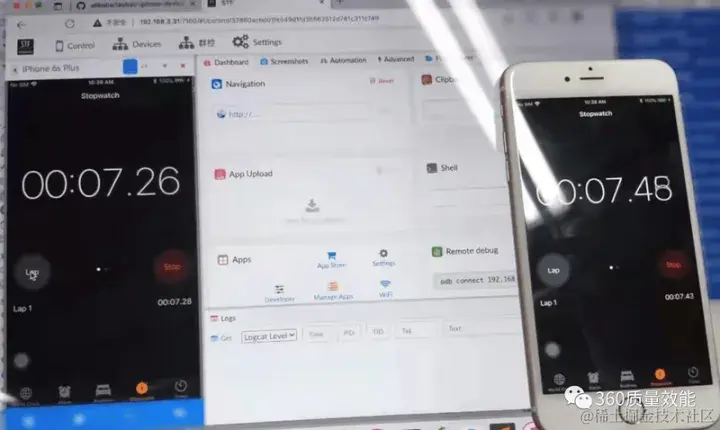 这里我们用开源项目STF[2] 来观察WDA图片服务视频流的效果。我们部署了一套STF在机器上,通过手机的秒表来记录视频流的延迟,结果是大概延迟200毫秒左右,点击有肉眼可见的卡顿。缺点是WDA服务启动过程略长,同时功能上不支持音频服务。