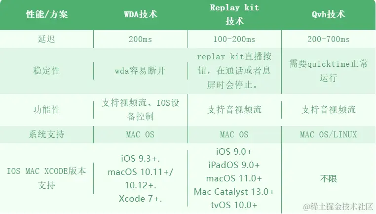 IOS远程控制技术当中,最重要的环节是视频的输出,本文就目前出现的几种IOS视频流技术做一个实践和对比,重点会放在比较这几个方案在性能上的优缺点。