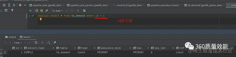通过上面的逻辑我们知道一个sql发送到服务端时候要经过优化器,而使用explain关键字可以模拟优化器执行sql查询语句,从而知道MySQL是如何处理sql的即sql的执行计划。