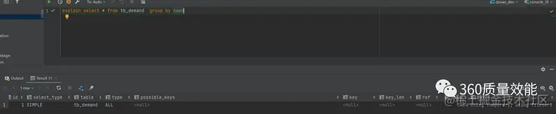 这种类型常常因为ORDER BY 和 GROUP BY导致,所以在进行数据排序和分组查询时,要注意是否加了索引以及索引是否生效。