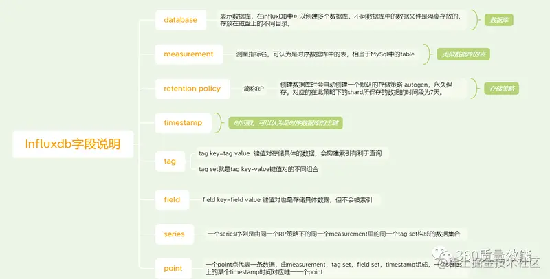 时序数据库与我们熟悉的关系型数据库有所不同,首先需要了解一下InfluxDB中字段的含义,如下图所示: