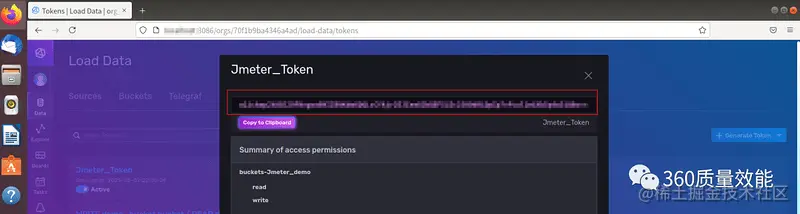 Jmeter相对于InfluxDB来说,属于外部系统,所以需要在InfluxDB中生成一个token用于外部时序数据写入数据库。