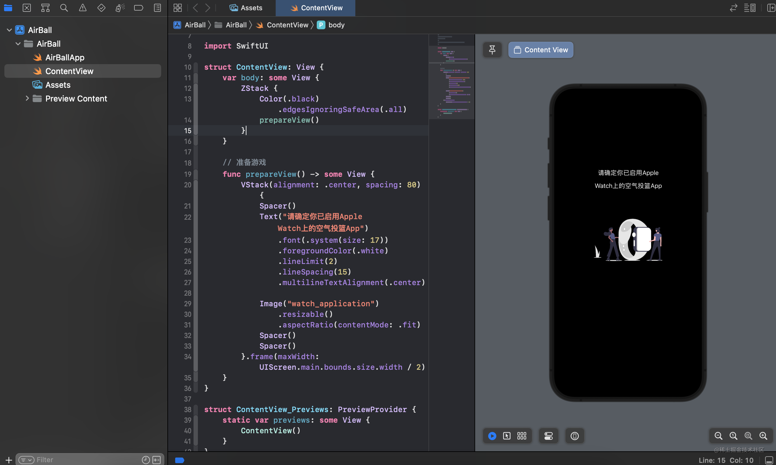 首先打开Xcode,创建一个新的SwiftUI项目,命名为AirBall,如下图所示: