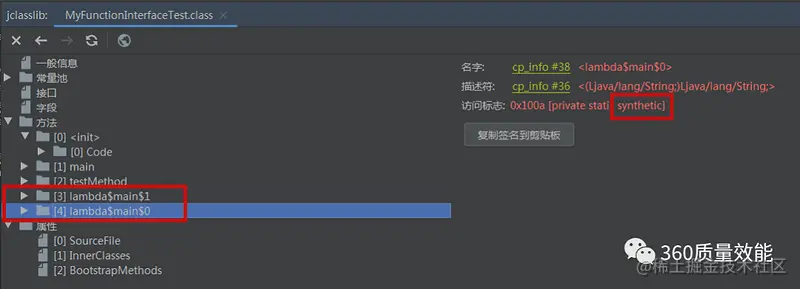 所以使用lambda表达式的地方,会在类编译的时候在本类中生成对应的私有静态方法和一个INNERCLASS的访问标识(具体是什么东西没找到资料,注释显示是一个访问标识),该访问标识会调用引导类加载器动态生成内部类,该内部类实现了函数式接口,在实现接口的方法中,会调用编译器生成静态方法,在使用lambda表达式的地方,通过传递内部类实例,来调用函数式接口方法。