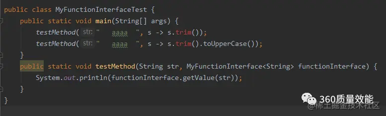 public static void testMethod(String str, MyFunctionInterface<String> functionInterface) {