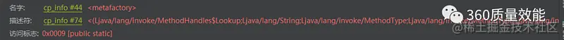 可以看到INVOKEDYNAMIC 后面的一系列指令,最后使用INVOKESTATIC调用