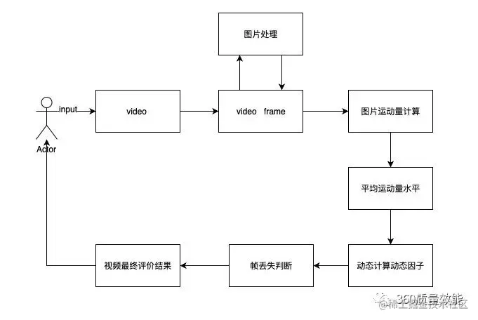 用户上传视频文件后,使用ffmpeg 转换为图片序列,抽取图片信息,计算所有序列帧的图片运动像素,计算所有序列图片的平均运动水平,动态计算动态因子,输出判断结果, 0表示当前不存在卡顿点, 1表示当前存在卡顿点。