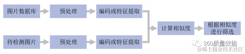 相似图像的检测过程简单说来就是对图片数据库的每张图片进行编码或抽取特征(一般形式为特征向量),形成数字数据库。对于待检测图片,进行与图片数据库中同样方式的编码或特征提取,然后计算该编码或该特征向量和数据库中图像的编码或向量的距离,作为图像之间的相似度,并对相似度进行排序,将相似度靠前或符合需求的图像显示出来。