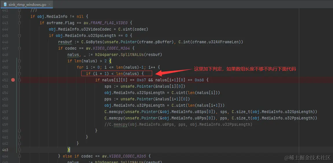 在sink_rtmp_windows.go中,加入如下代码进行判断,防止操作数组长度以外的数据。