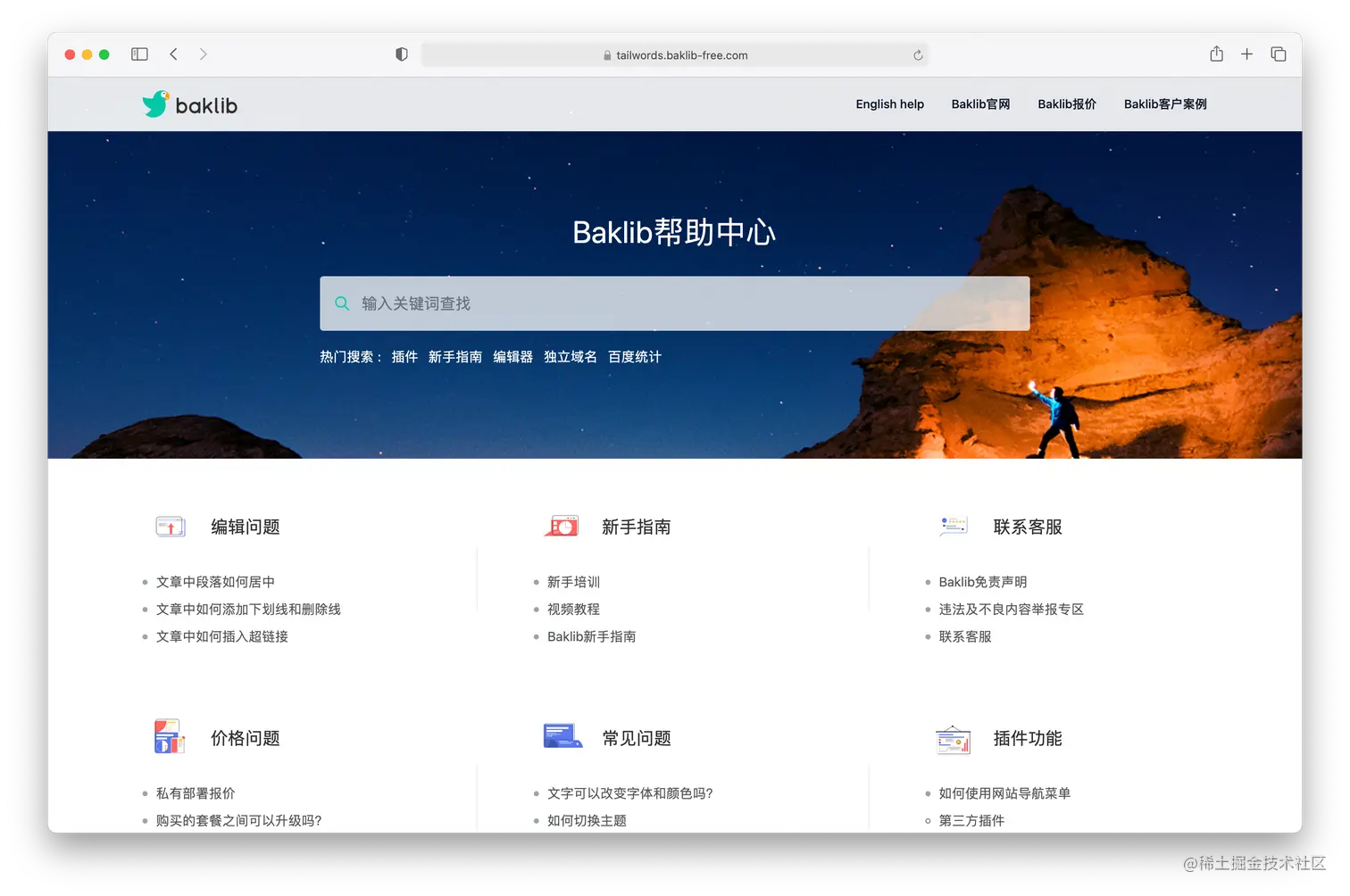 - 细节:提供了很多实用的插件包括全局搜索、用户反馈功能、文章导读、帮助站点的访问统计、站点导航...