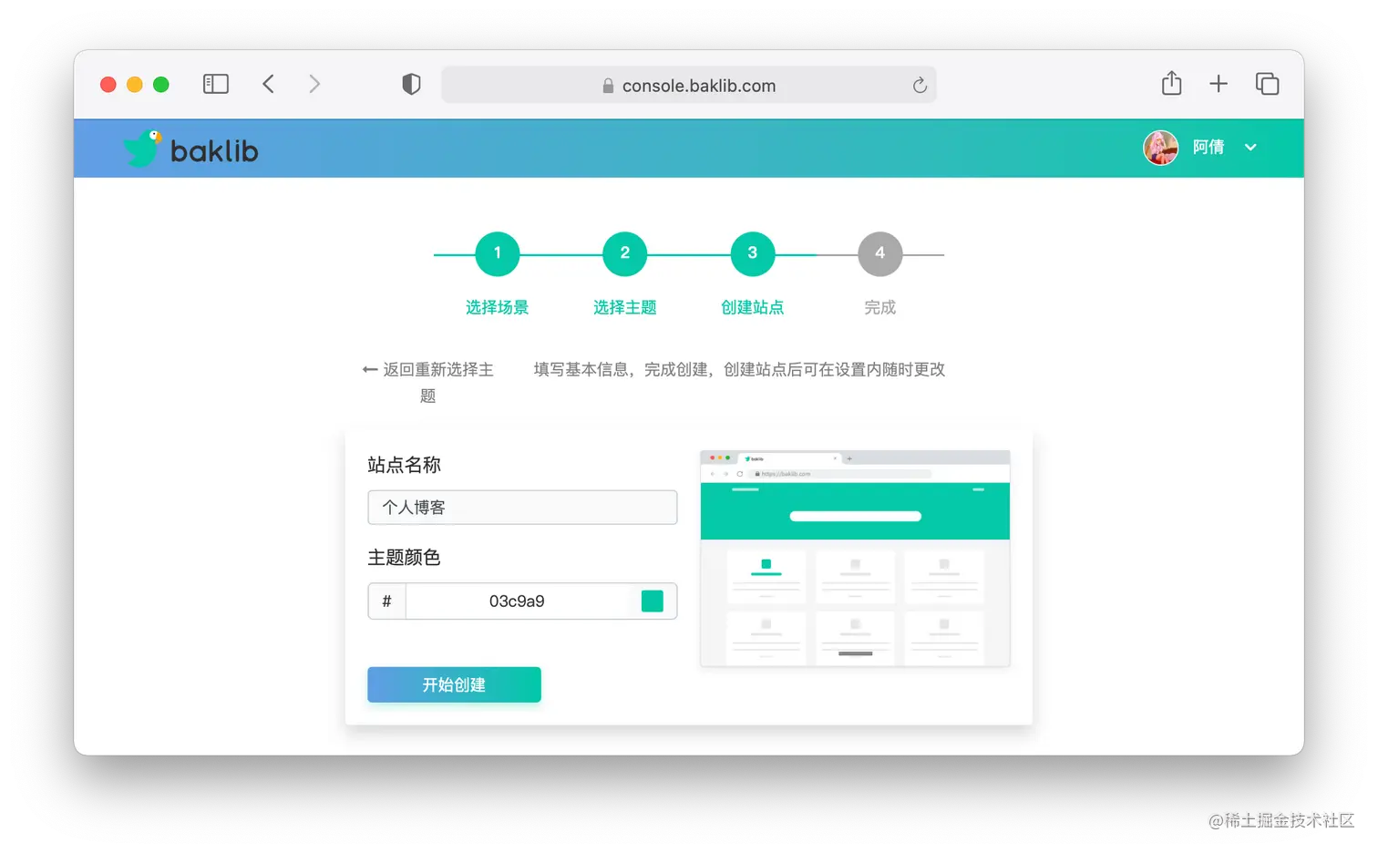 进入官网,创建站点,选择合适的网站主题模板,填写站点名称信息: