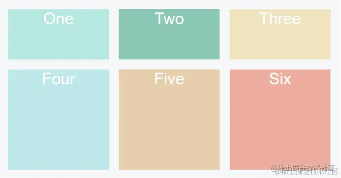 一个网格单元是在一个网格元素中最小的单位,上图中 One、Two、Three、Four… 都是一个个的网格单元