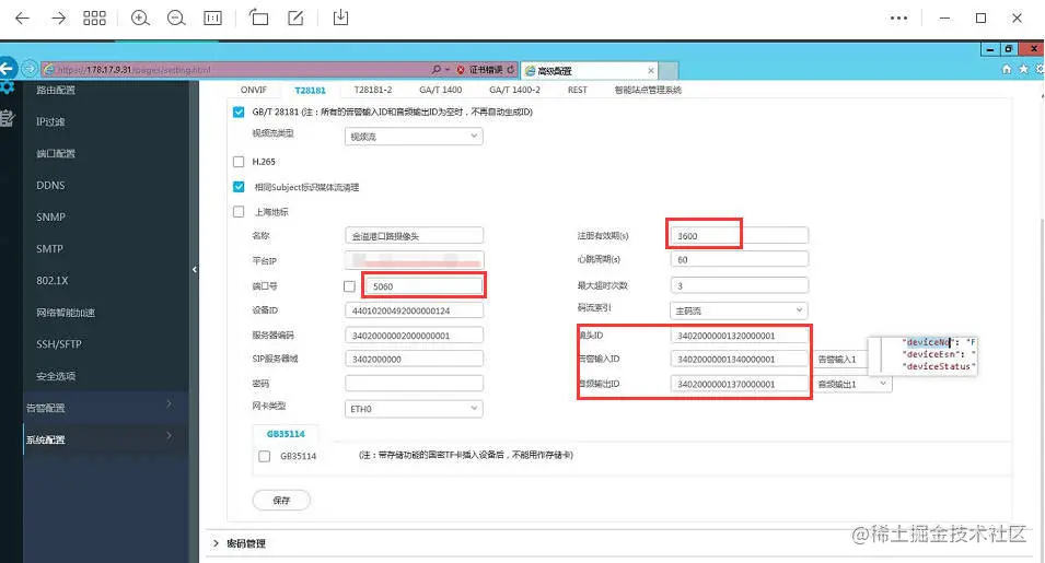 从上图的数据中发现,报错提示端口不可达、设备网络连接超时。根据抓包的反馈信息,我们进入到华为设备的配置页面,检查配置参数,并修改端口及相关参数: