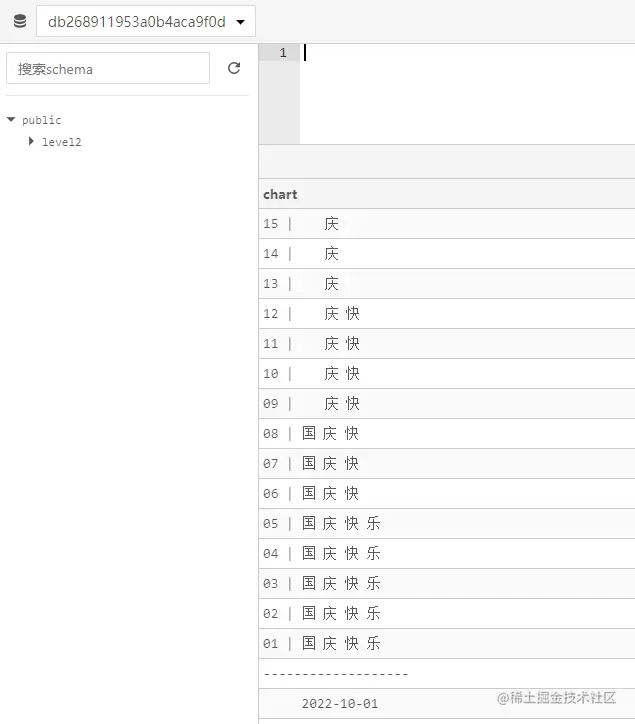 活动期间,只要在论坛活动帖(地址:risu.io/bVgkJ )下方评论区贴出答案就算参加活动。注意,截图需为在MemFire Cloud SQL编辑器中的效果。
