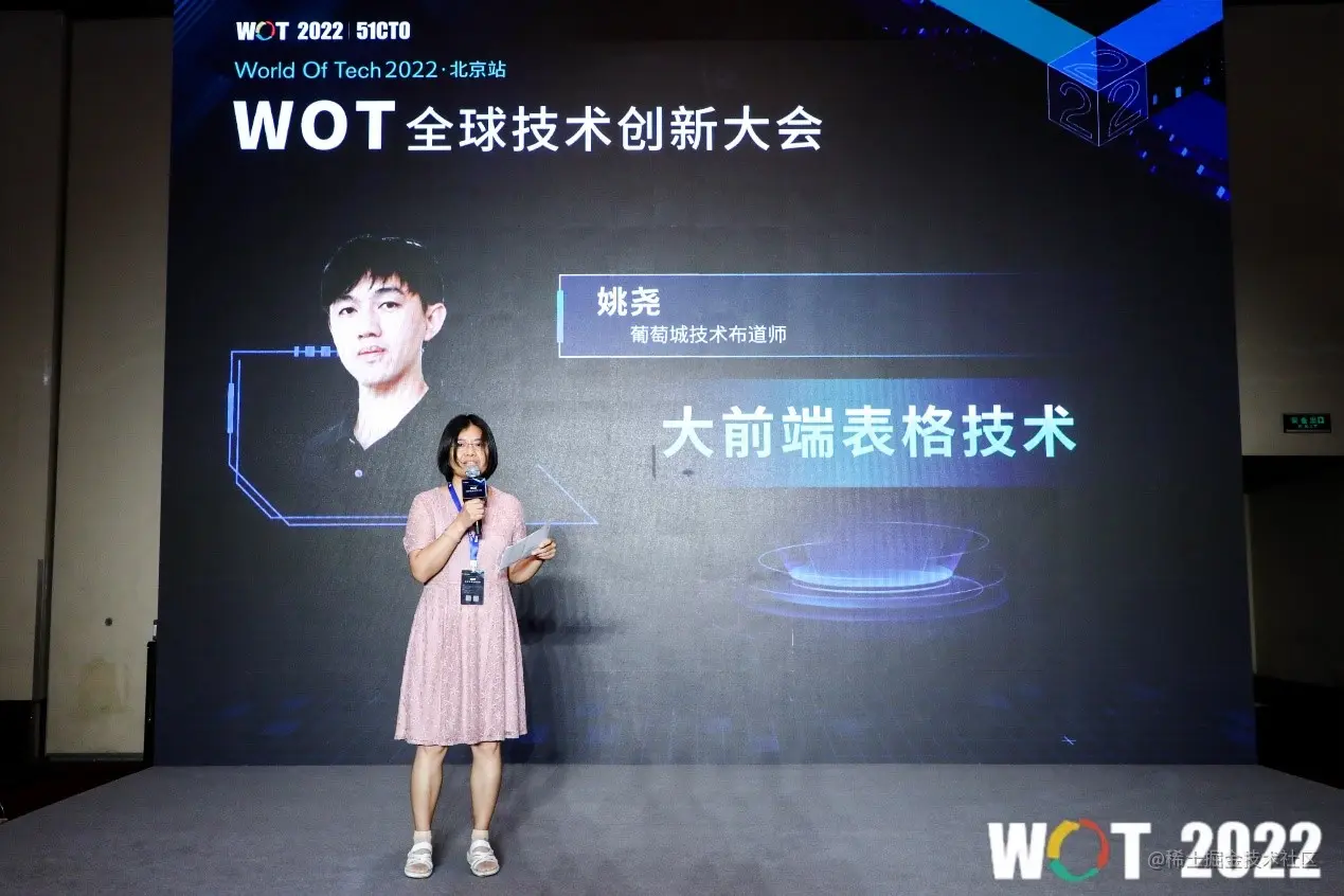 9月,WOT(World of Tech)全球技术创新大会在北京举行。葡萄城受邀参加本次大会,技术布道师姚尧先生出席并为大家带来了大前端表格技术分享的主题演讲。 WOT(World of Tech)全球技术创新大会是由51CTO开创的综合性高端技术会议品牌,致力于展现国内外技术领域的热点和趋势、搭建全球技术人的深度分享和广泛交流平台、推动先进技术在中国的场景落地和行业融合。自2012年首次举办以来,历时10年沉淀,累计超过万名技术人员现场参与,覆涉及人工智能、数据安全、音视频、大数据、架构、开源、云原生、前端、研发管理、算法、金融科技、微服务等话题,同时吸引了几百家国内外知名科技企业和行业龙头、近千位技术领军人物深度合作。