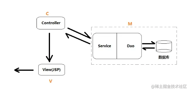 我们说的MVC只存在于Web层。而JavaEE的三层架构中,Web层只是三层中的一部分。当然,如果站在更高的角度,可以看成这样: