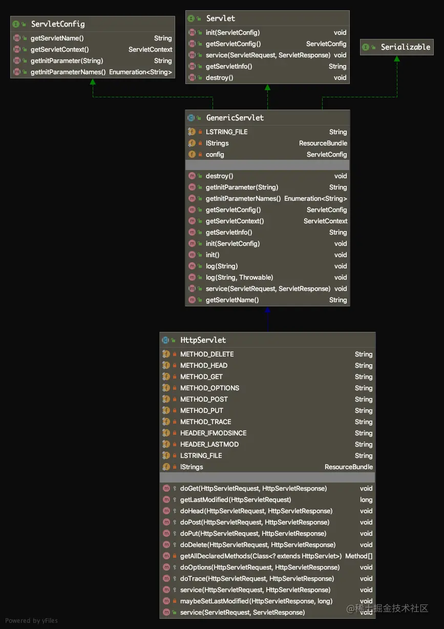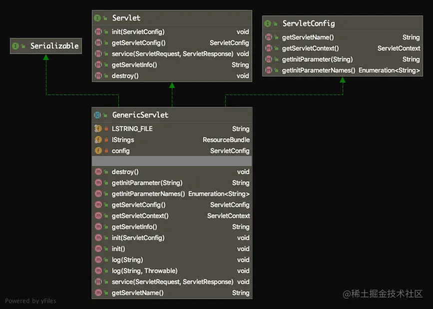 - 提供getServletConfig、getServletContext等方法,可以在其它方法中方便使用ServletConfig、ServletContext对象