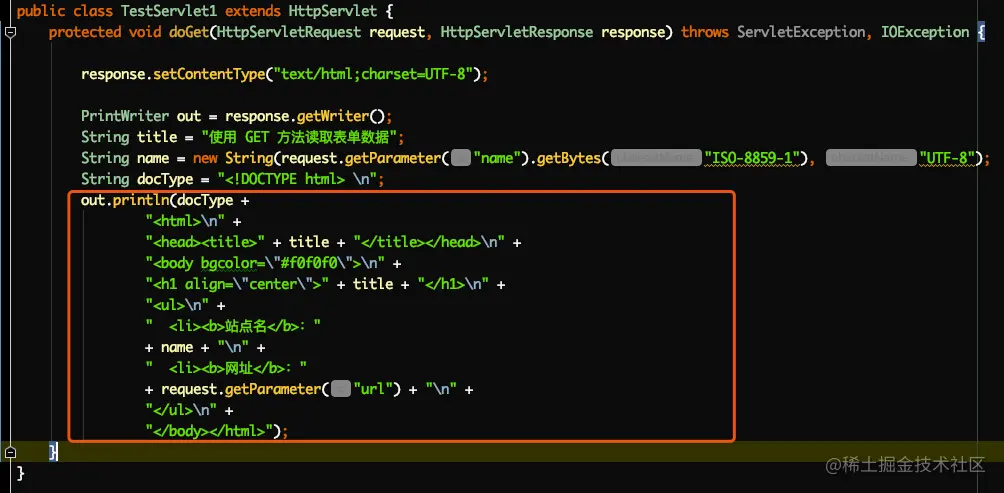 在使用Servlet进行web开发的年代,通常是美工写好静态html页面后,丢给程序员,然后在拿到数据后,逐句复制html静态页面上的html语句到Servlet的中,同时把需要动态数据的部分拼接上去,比如: