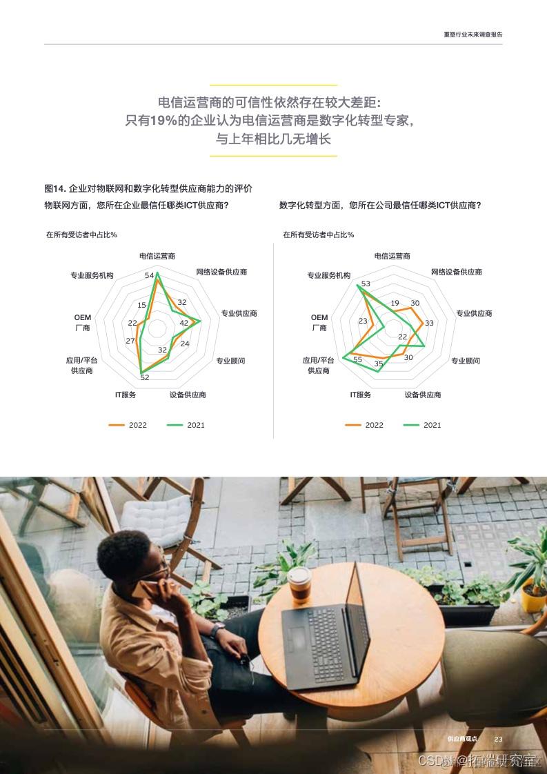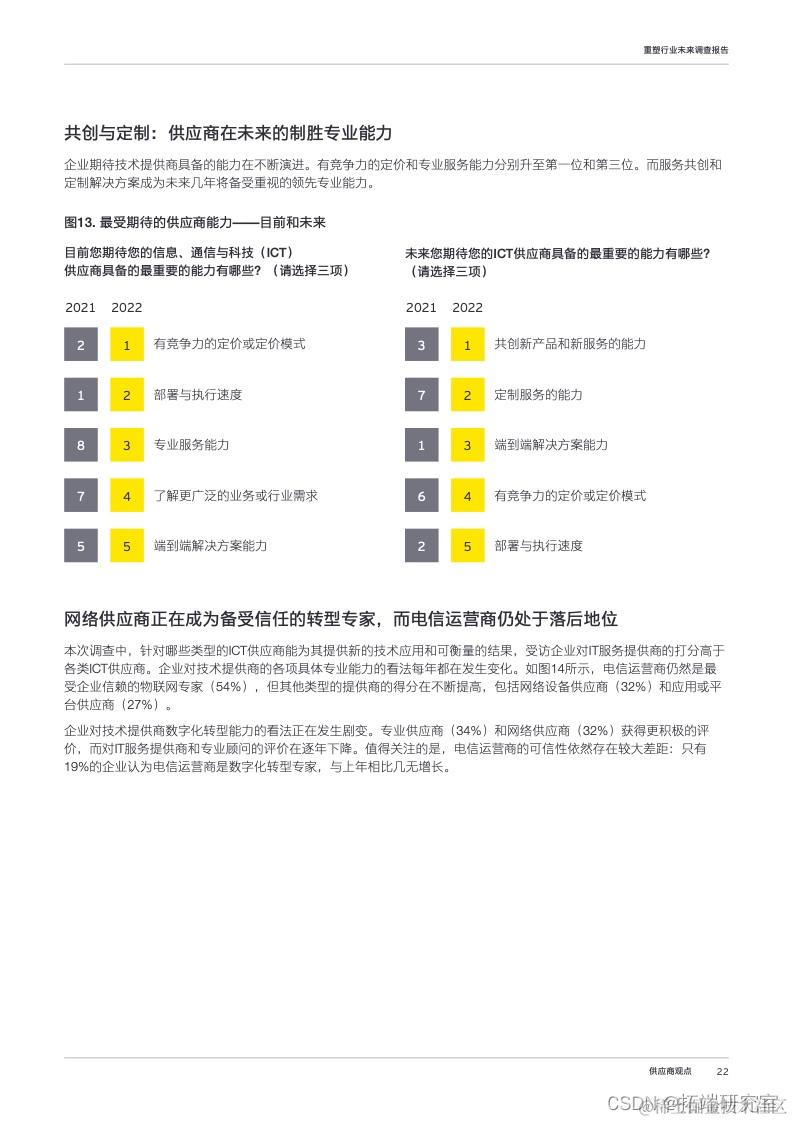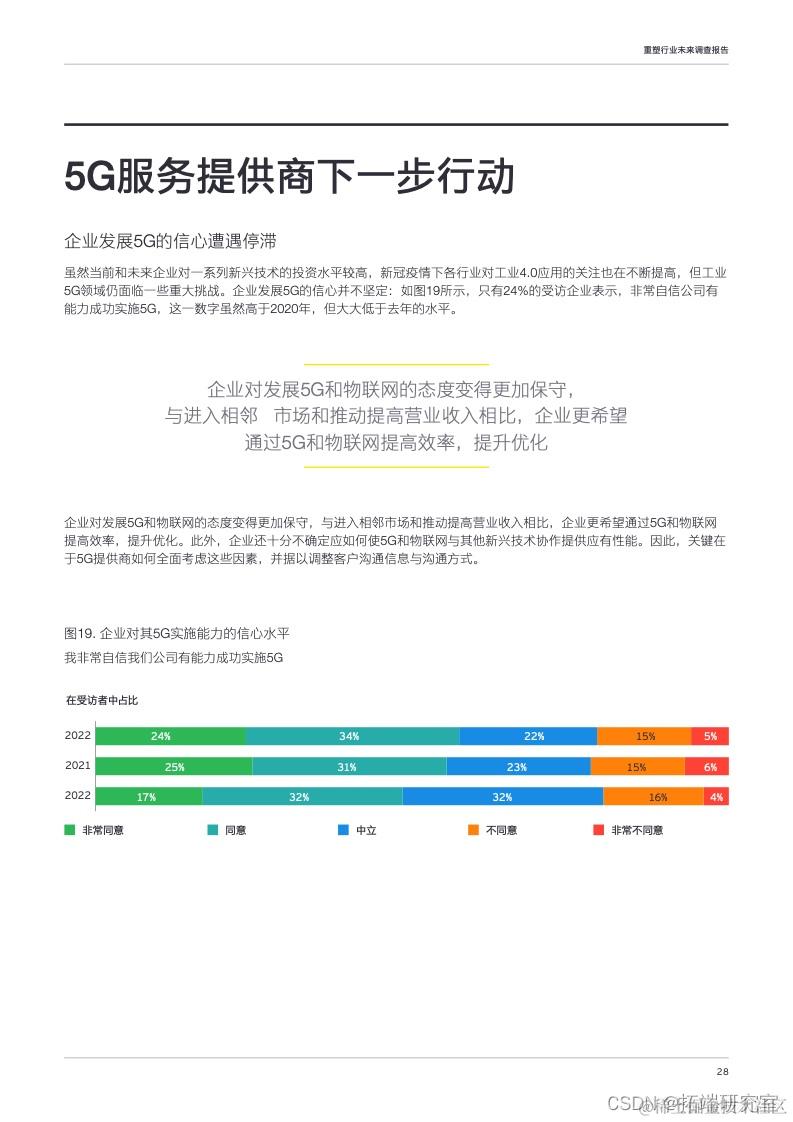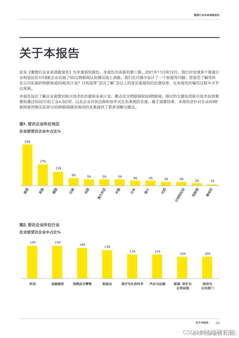 发布了 《2022年重塑行业未来调查报告》 ,探讨工业4.0时代企业客户5G业务增长机会。报告对全球多个垂直行业和地区的1018家企业开展了线上调查,了解企业高管对新兴技术的态度和未来计划,重点关注5G和物联网投资计划,以及企业对供应商和协作式生态系统的态度。并基于调查结果,针对企业5G物联网应用情况及其与服务提供商间的关系提供了更多洞察与建议。