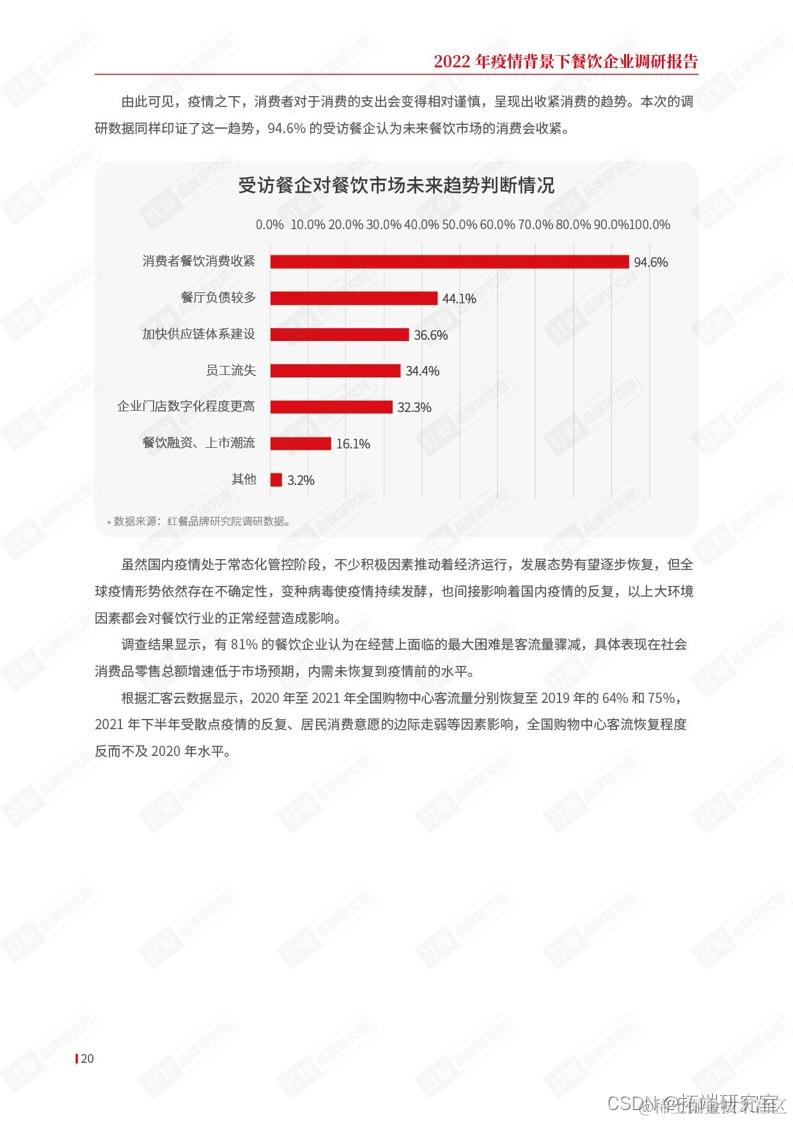 本次的调研数据同样印证了这一趋势,94.6%的受访餐企认为未来餐饮市场的消费会收紧。
