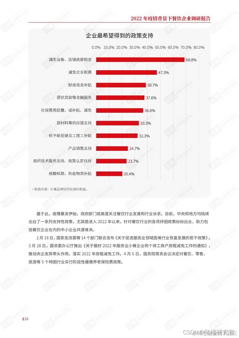 本次调研显示,近七成企业希望减免房租租金,接近五成餐饮企业希望政府减税降费,而近四成企业希望能得到贷款等金融服务支持。