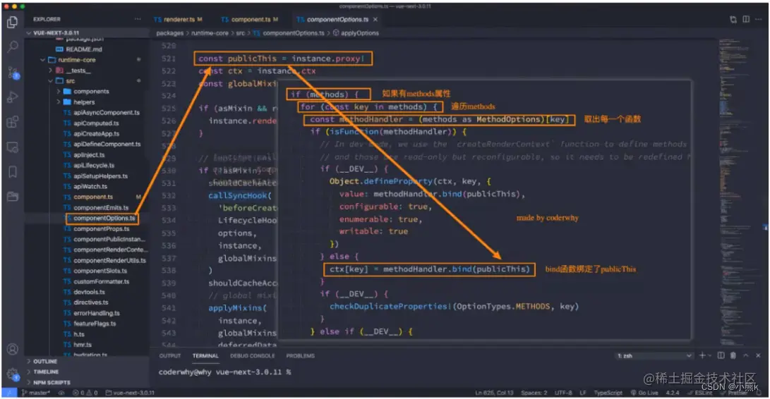 事实上Vue的源码当中就是对methods中的所有函数进行了遍历,并且通过bind绑定了this