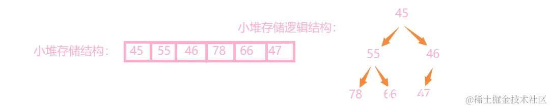 这里我们实现的堆的逻辑结构是完全二叉树,存储结构为数组