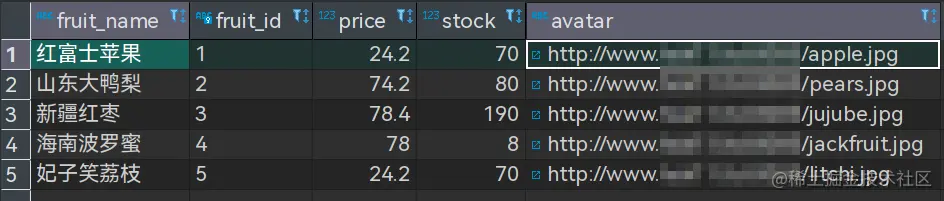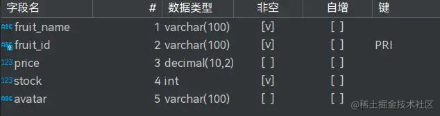 | fruit_name | fruit_id | price | stock | avatar |