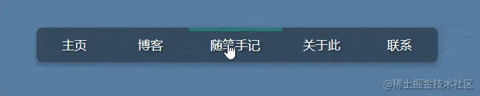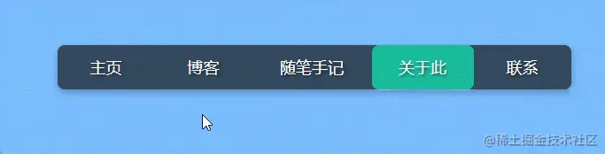 如下,是利用transition过渡,通过改变元素位置实现的背景跟随按钮或菜单滑动的效果,位置的改变需要经过一段时间的持续,因此产生了滑动的效果。