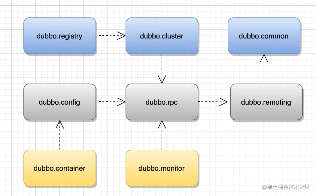 config 配置层: 对外配置接口,以 ServiceConfig, ReferenceConfig 为中心,可以直接初始化配置类,也可以通过 spring 解析配置生成配置类