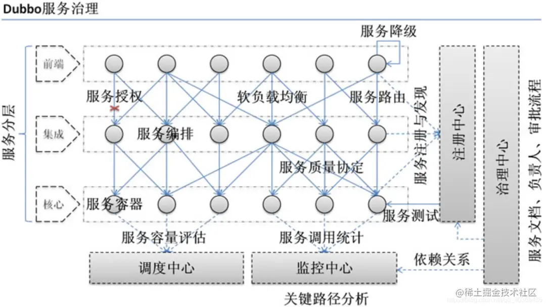 服务治理中心: 路由规则,动态配置,服务降级,访问控制,权重调整,负载均衡,等手动配置