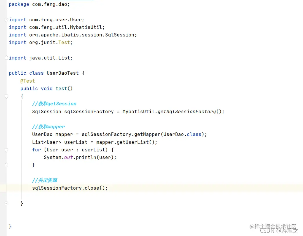 第十步:在绿色JAVA中创建一个Test类,注意包要与上面蓝色JAVA中的对应