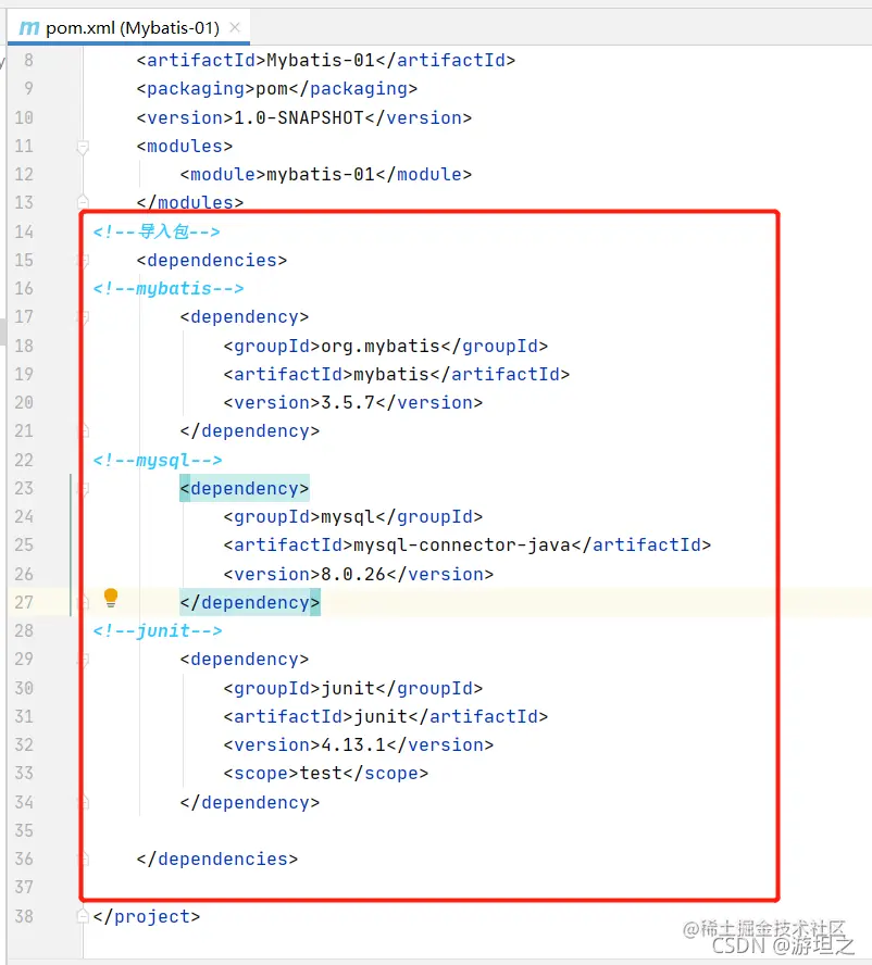 第三步:pom文件中导入相应的包