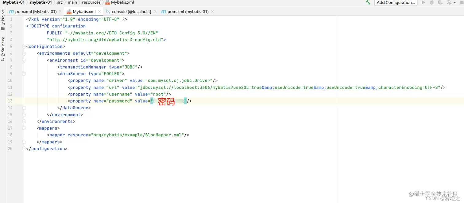 第六步:在resources中创建mybatis.xml文件,配置
