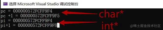 printf("pi+1 = %p\n", pi+1);