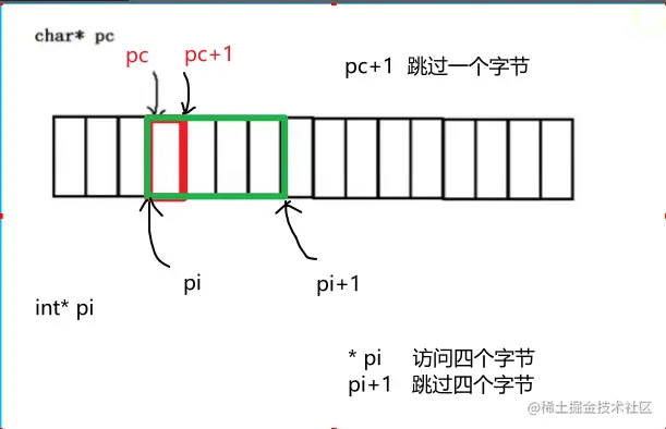 比如: char* 的指针解引用就只能访问一个字节,而 int* 的指针的解引用就能访问四个字节。