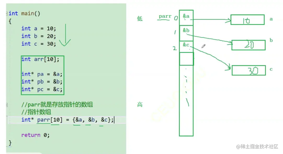 ✔存放指针的数组